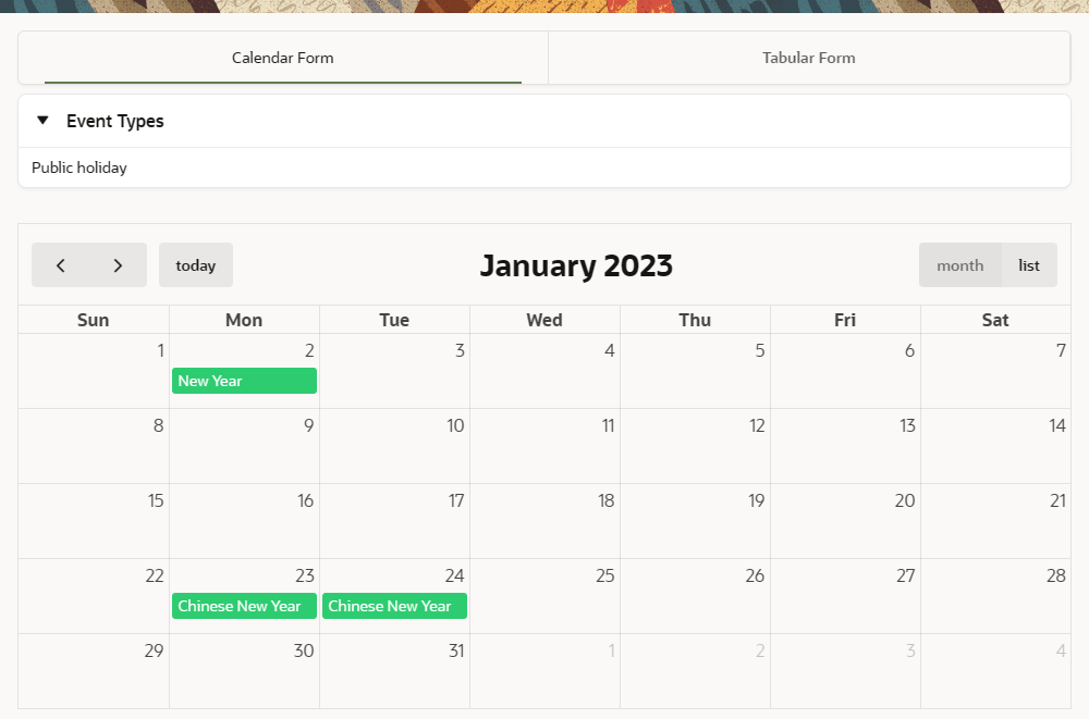 Public Holiday Calendar